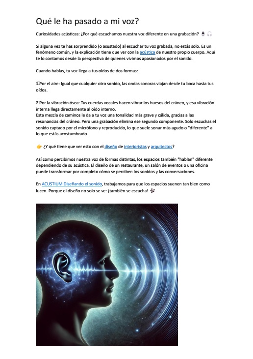 Si alguna vez te has sorprendido (o asustado) al escuchar tu voz grabada, no estás solo. Es un fenómeno común, y la explicación tiene que ver con la acústica de nuestro propio cuerpo. Aquí te lo contamos.......