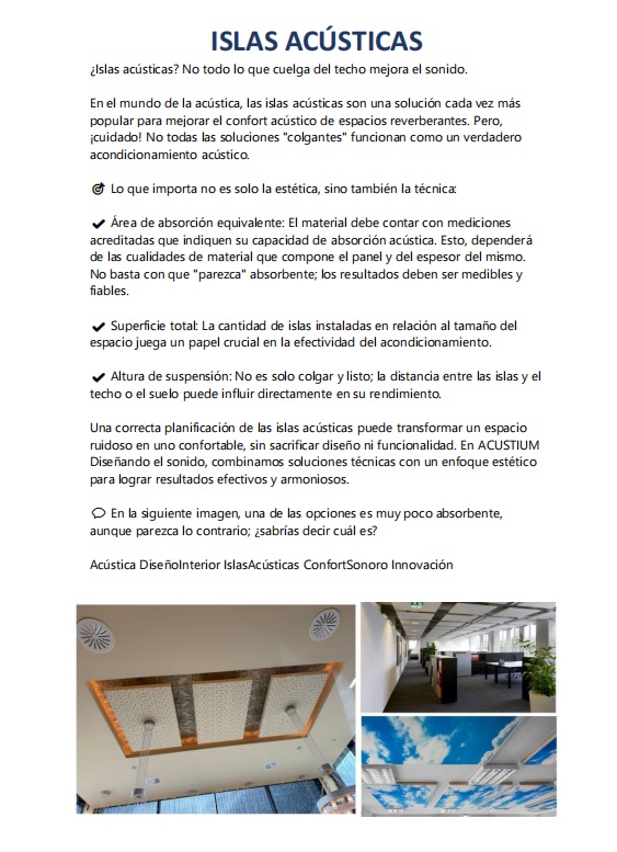 ¿Islas acústicas? No todo lo que cuelga del techo mejora el sonido. En el mundo de la acústica, las islas acústicas son una solución cada vez más popular para mejorar el confort acústico...