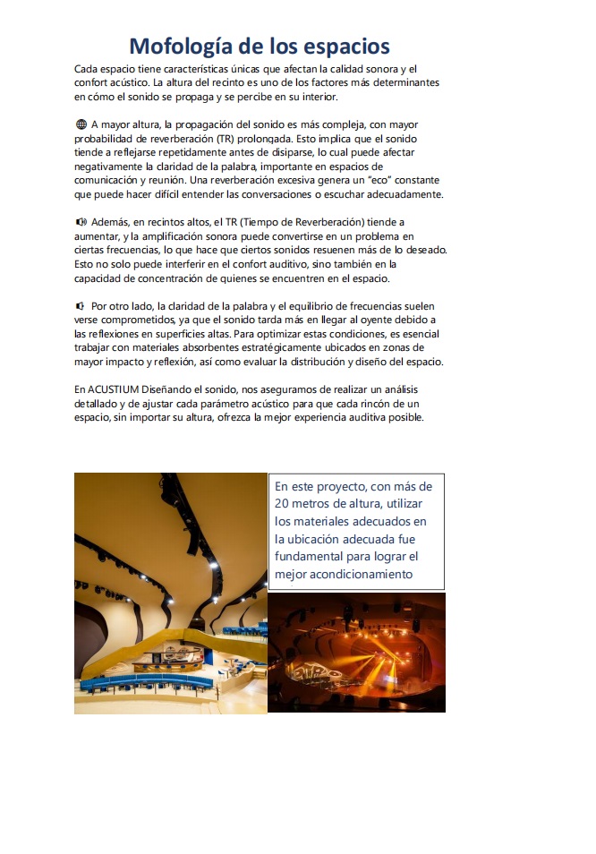 Cada espacio tiene características únicas que afectan la calidad sonora y el confort acústico. La altura del recinto es uno de los factores más determinantes en cómo el sonido se propaga y se percibe en su interior.